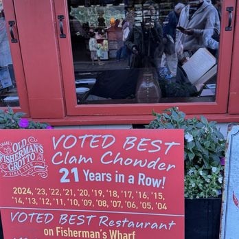 As long time locals, we know where to find the best clam chowder in the area, and this is it! It has been 30 years since I worked on the wharf in one of the candy shops and the clam chowder today is just as good as it was when I used to buy it for my lunch break, perhaps even better! This restaurant exudes old school hospitality in the best way possible. From the friendly employees out front that greet you, to the wait staff, to the hostesses, chefs, and bartenders, every person we have ever encountered here does their very best to ensure guests have a wonderful experience. You will never leave this restaurant without leftovers and a huge smile. It is our go favorite spot to take friends visiting from out of town for one reason, it is unfailingly reliable as a place for a wonderful, generously sized comfort meal served by an impeccably trained staff. We appreciate you all and we cannot recommend the Grotto highly enough!